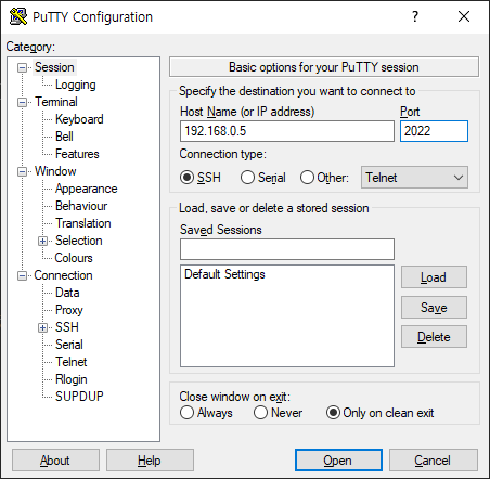 SSH 터미널에 접속할 수 있는 프로그램 (PuTTY 등)으로 SSH에 접속하여 로그인합니다.
