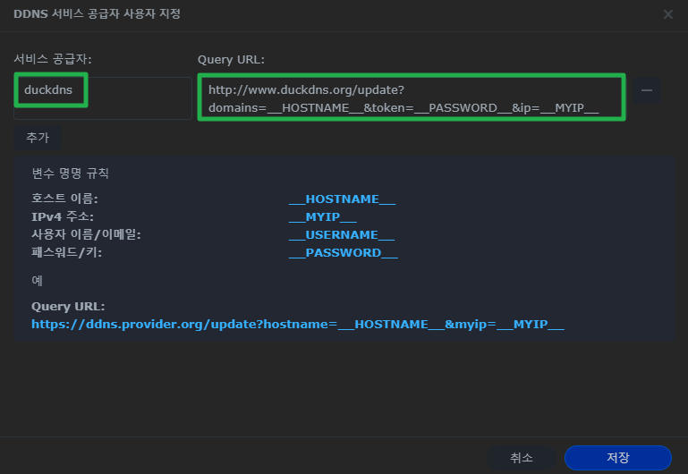 위 이미지는 필자가 실제로 사용중인 DDNS이므로,
