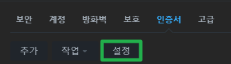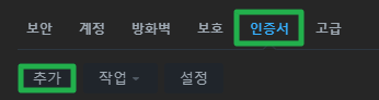 시놀로지의 제어판 > 보안 > 인증서 탭에서 추가를 클릭합니다.