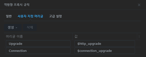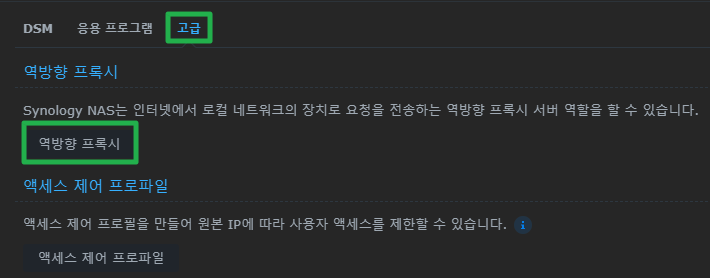 고급 탭에서 역방향 프록시를 클릭합니다.