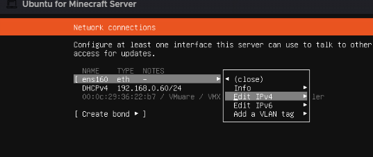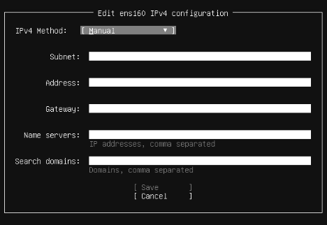 혹은 ens160을 선택하여 수동으로 IP를 할당하여도 됩니다.
