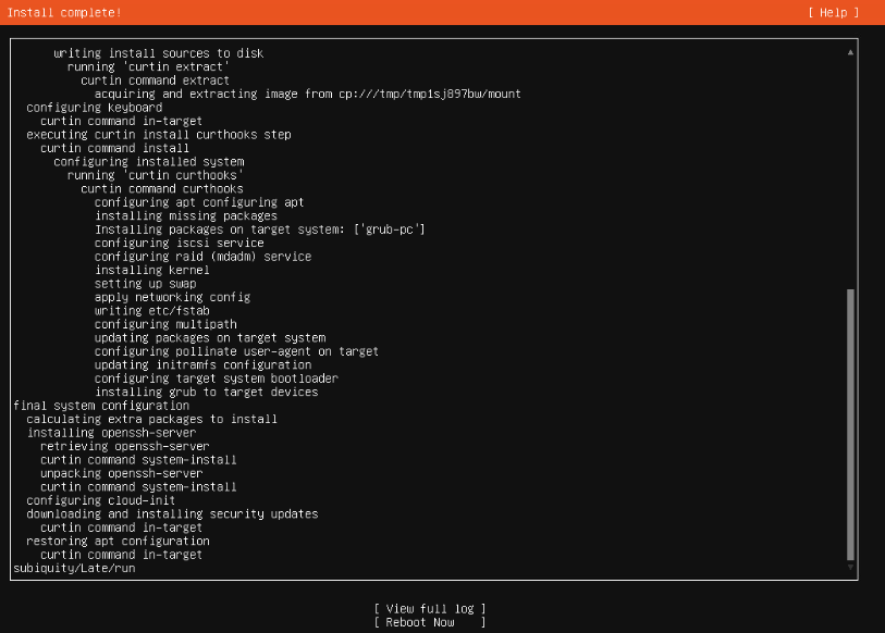 설치가 끝났다면 Reboot Now를 선택하여 재부팅합니다.