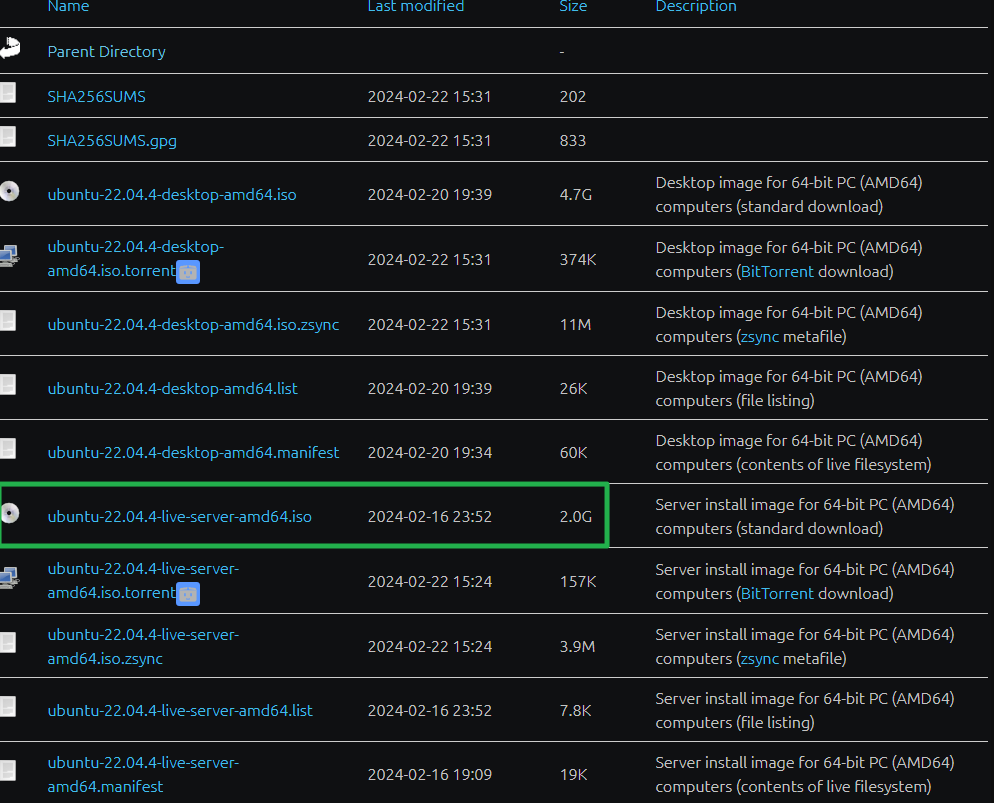 위 링크에서 Ubuntu Server용 ISO를 다운로드합니다.