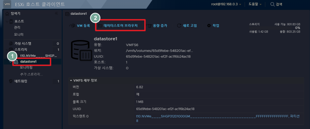 datastore1 > 데이터스토어 브라우저를 클릭합니다.