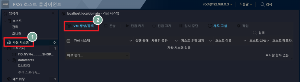 이후 ESXi 호스트 클라이언트 (이하 ESXi)에서