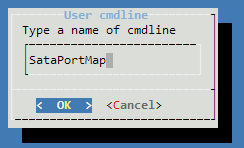 위와 같이, Type a name of cmdline에는 SataPortMap을 입력합니다.
