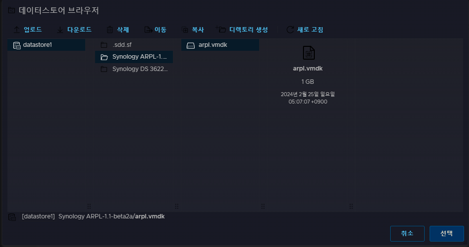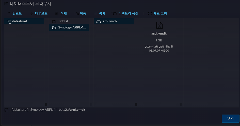 업로드하면 위 이미지처럼, arpl.vmdk라는 하나의 파일만 보이게 될 것입니다.