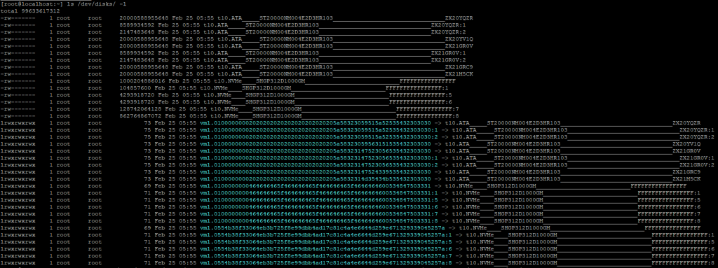 ls /dev/disks/ -l